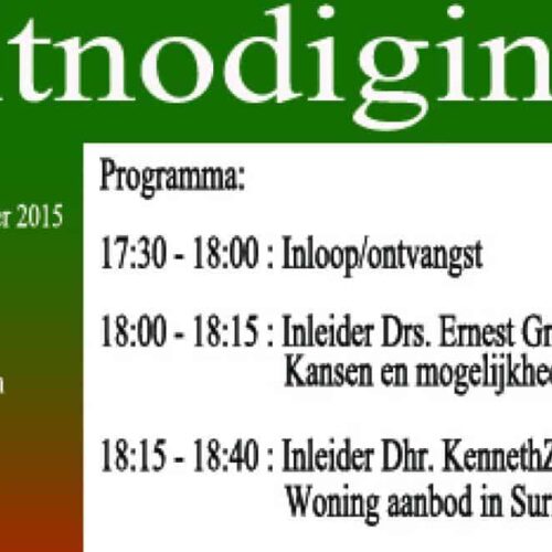 Zaken doen in Suriname – stichting Collectief Overzee Suriname i.s.m. New Homes Development N.V. Programma: 17:30 uur – 18:00 uur : Inloop/ontvangst 18:00 uur – 18:15 uur : Inleider Drs. Ernest Grep:  over kansen en mogelijkheden  in Suriname 18:15 uur – 18:30 uur : Inleider Dhr. Kenneth Zandvliet:  woning aanbod  in Suriname 18:45 uur – 19:00 […]