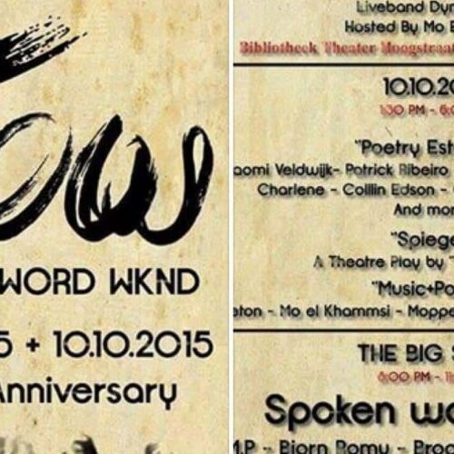 Het eerste spoken word weekend in Nederland ! ZA 10 OKT 38 artiesten , 5 shows , 2 locaties en 2 dagen… Rotterdam zal bruisen op 9+10 oktober ! De Rotterdamse Theater Bibliotheek opent haar deuren op 9 oktober voor FLOW & op 10 oktober is Theater Islemunda de thuisbasis voor FLOW. Op 10 oktober […]