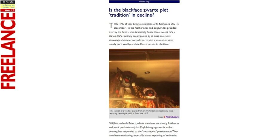 Freelance schrijft ook over initiatieven die haar Nederlandse afdeling al enkele jaren ertegen onderneemt. “NUJ Netherlands houdt de subjectieve verslaggeving van anti racisme demonstraties betreffende zwarte piet in de gaten. Hierin zijn zij geinspireerd door de Gedragsregels van de NUJ en haar Race Reporting Guidelines.