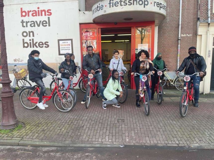 We sleepten een groep kinderen het huis uit, om Amsterdam op de fiets te gaan ontdekken. Ze zitten al maandenlang opgesloten in huis, doen hun schoolwerk alleen maar online, dus met #team Weekend College AmsterdamZO deden we vandaag een COVID-vrije fietstocht langs gebouwen die Amsterdammers moeten kennen. Zo zijn ze ook uit huis, bewegen ze ook nog wat en zijn hun ouders even van hun af.