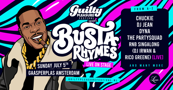 Amsterdam – Guilty Pleasure kondigt met trots Busta Rhymes in concert aan: een exclusieve show van de internationale hiphopicoon bij de Gaasperplas in Amsterdam. Op zondag 5 juli 2026 geeft Busta Rhymes zijn enige optreden in Nederland én België.