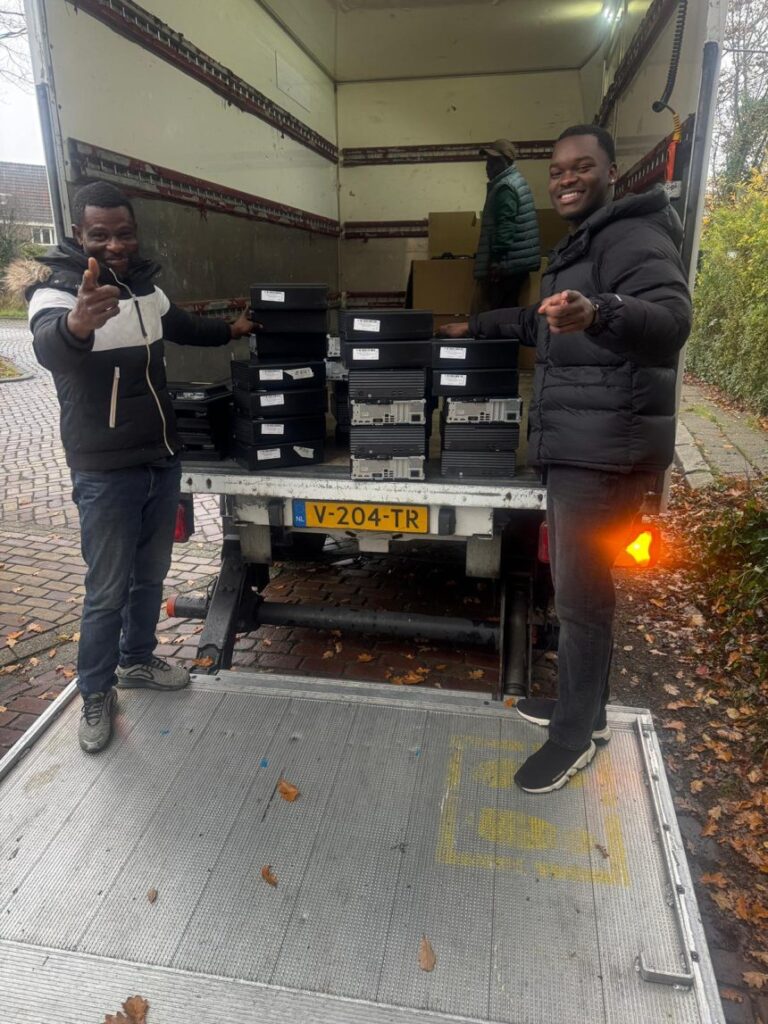 De opdracht was om 30 gebruikte, maar volledig werkende computers te verschepen naar de universiteit. Dat klinkt eenvoudig, maar voor veel Ghanese studenten kan een computer het verschil maken tussen achterstand en vooruitgang.