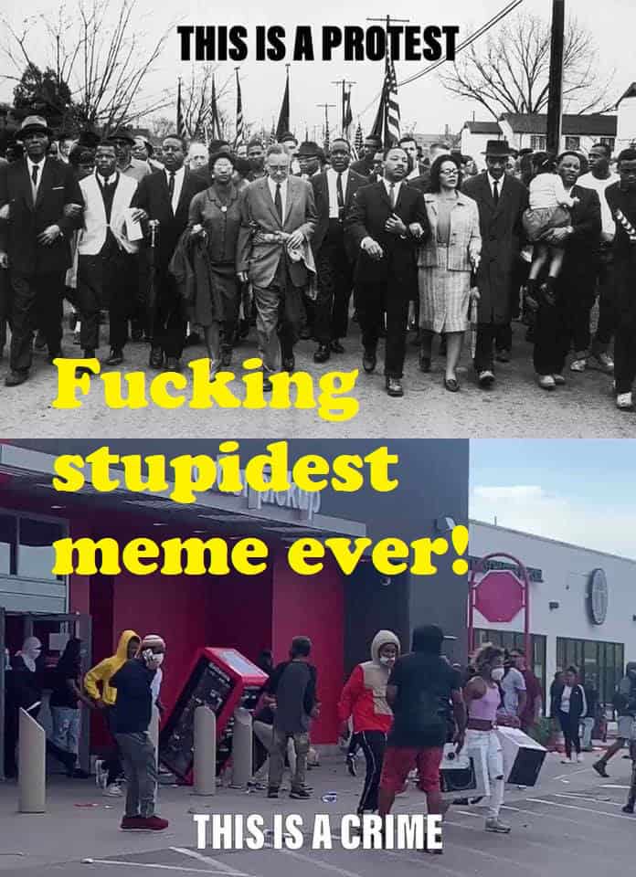 Mensen die lullen over 5000 mensen die protesteren tijdens Corona. Die de meme delen waarin de protesten in Amerika worden vergeleken met de vreedzame protestmarsen van de 60s. You need to shut your whole ass up!